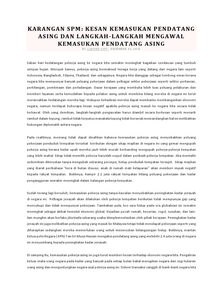 Karangan Pendatang Asing Tanpa Izin Pdf